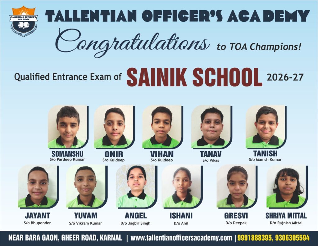Talentian Officers Academy – TOA Karnal(UKG to Class 11)